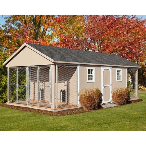 This High quality, Amish Handcrafted 12 x 24 Large 4 Run Dog Kennel is proudly Made in America! This dog kennel shipped fully assembled and is available with many upgrades. Do you live in cold weather climate? All of our kennels come fully insulated with R-7 insulation (R-11 insulation is available upon request) and an insulated standard door. Select the insulated metal roof and electric package with space heater for additional insulation and warm.
