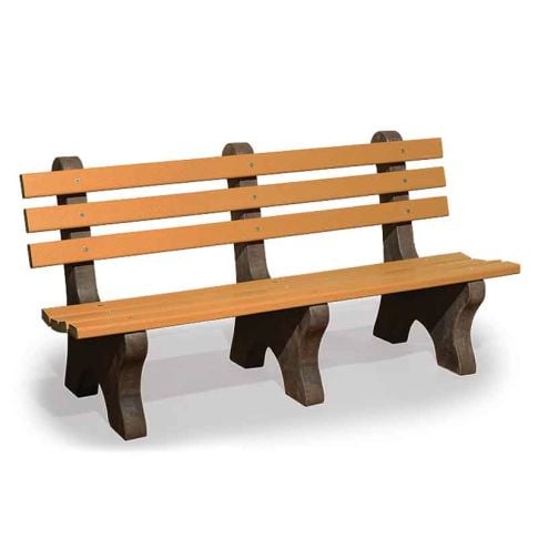Handcrafted in Lancaster County, PA, by skilled Amish woodworkers, this 6 foot polywood park bench is guaranteed to last for years and years. Built on a concrete base with your choice of polywood colors and concrete colors. Also offered with custom engraving on the seat back.