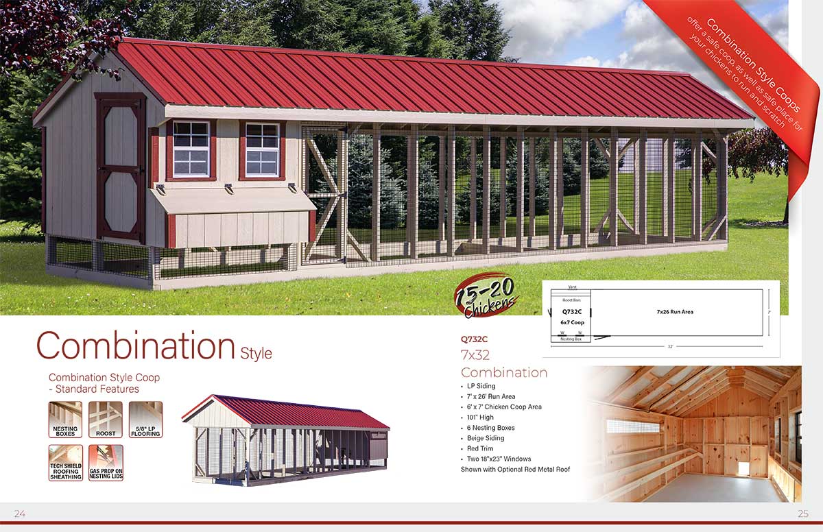 Amish Made 7W x 32L Combination Quaker Chicken Coop