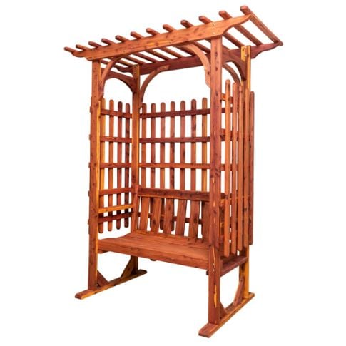 This cedar Garden Bench Arbor design creates a cozy nook to rest in shaded comfort. Its overhead and side slat screens provide privacy and showcase the quality craftsmanship of this Amish-made outdoor furniture piece.