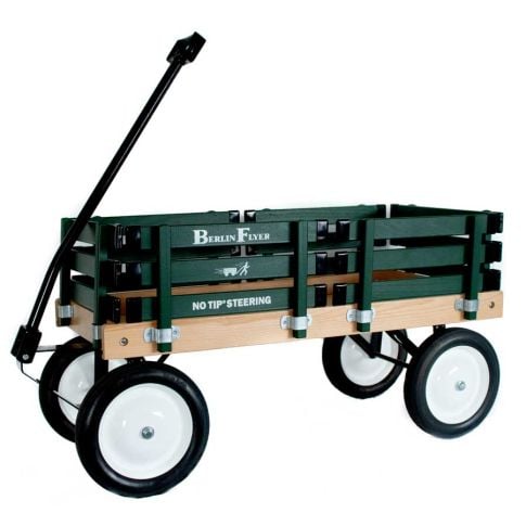 The Amish Made Hunter Green Berlin Flyer Wagon is our most popular wagon in the Berlin Wagon Collection. This kid's flyer wagon is handcrafted in Ohio using all USA manufactured materials, hardwood and steel. Durable, high quality construction, this wagon includes No-Tip® Steering technology, which makes it ideal for smaller children.