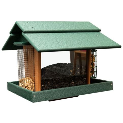 This Classic Deluxe Bird Feeder is handcrafted from durable poly lumber, by Amish woodworkers in Indiana. Poly lumber will not rot or fade so is ideal for any climate, and guaranteed to last for many years. This post-mount feeder with screen floor comes in a variety of color combinations to suit your outdoor space.