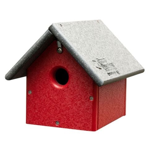 This Wren or Chickadee House is handcrafted from durable poly lumber, by Amish woodworkers in Indiana. Poly lumber will not rot or fade so is ideal for any climate, and guaranteed to last for many years. This hanging bird house comes in a variety of color combinations to suit your outdoor space.