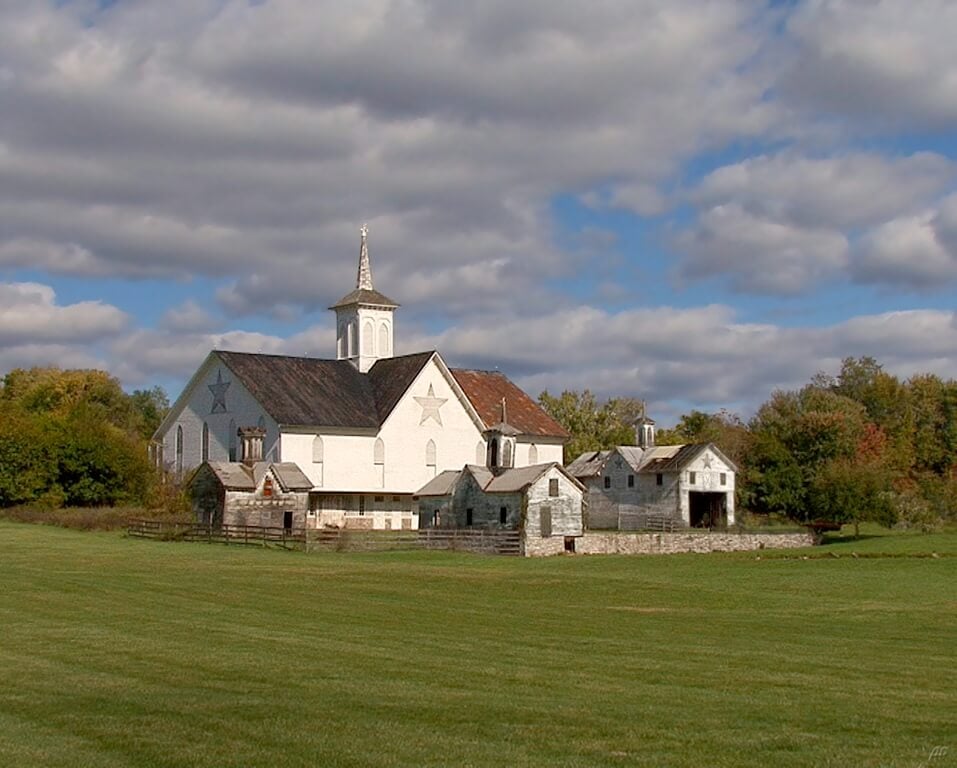 Since 1877, the majestic Gothic Revival-style Star Barn has been a landmark on the Central Pennsylvania landscape and has been particularly visible by travelers passing within 50 feet of its bank barn side since Route 283 was added in 1970. Its towering cupola, four dominant louvered star ventilators, 56-foot-long vaulted stone tunnel, and other rare architectural features made it a cut above the standard Pennsylvania bank barn. Read more...