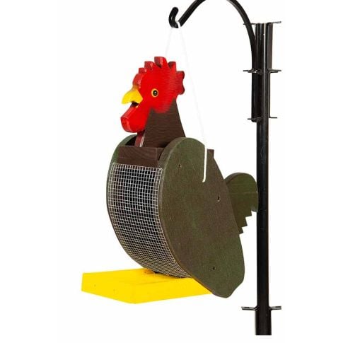 Amish Made Wooden Rooster Shaped Hanging Bird Feeder