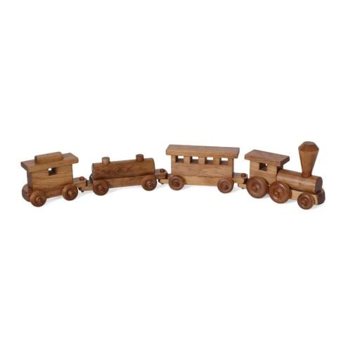 A traditional wooden toy train is a perfect gift for any child. Made by Amish woodworkers, this wooden toy train is made from solid pine with a harvest brown or maple wood. Fully functional wheels and easy-to-hook train cars, this toy is fun for kids of all ages.