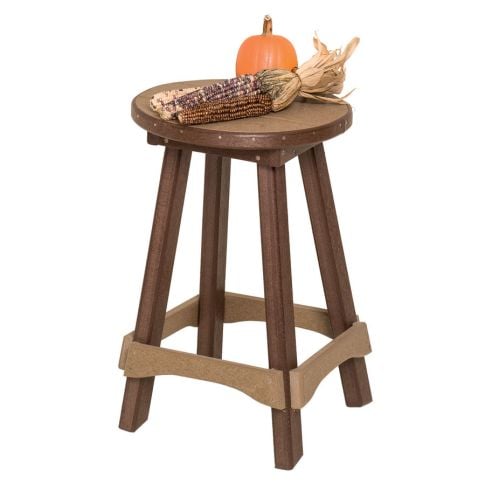 This Outdoor Bar Stool is made from eco-friendly poly lumber and is a very sturdy choice for patio furniture material. Rot free, fade free and weatherproof!