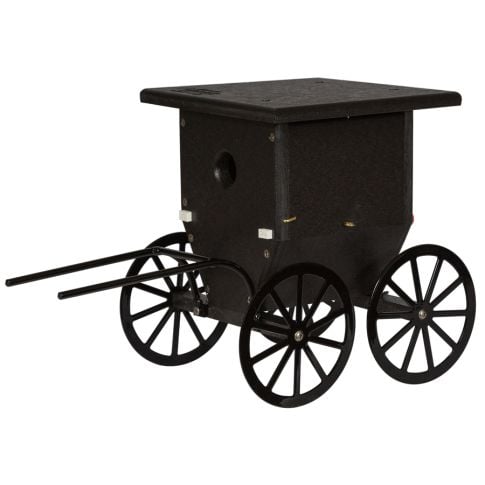 This charming Amish Made Buggy Hanging Wren Birdhouse is handcrafted using durable poly lumber. Rot free, fade free and nearly maintenance free (clean out using soapy water), this birdhouse will last for years.