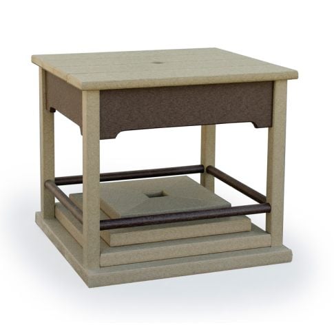 Escape the heat and sunlight under an umbrella. This Poly Van Buren end table is built to support a 7' umbrella. Select from an array of umbrella fabrics. Our Poly Van Buren Set is an elegant option for outdoor patio furniture. The deep seating and large cushions allows for maximum comfort while relaxing outside. Made by Amish craftsmen, using durable, eco-friendly Poly, this set is sure to last for years to come. Select from a wide array of Poly colors and cushion fabric. Mix and match to make your perfect Deep Seating Van Buren Patio Set.