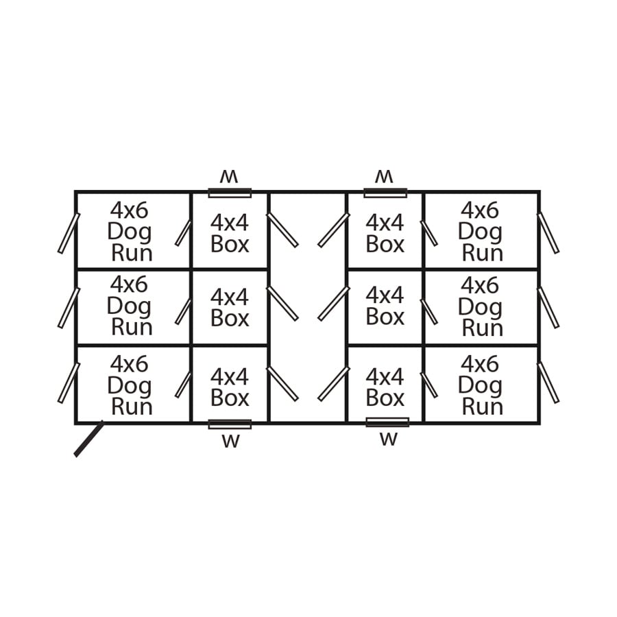 Discover the ultimate solution for your canine companions with this 6 Run Commercial Grade Prebuilt 12x24ft Dog Kennel, proudly built by skilled Amish craftsmen in Pennsylvania. With over 15 years experience building custom made dog kennels, we've refined our designs for durability, functionality, and comfort, making it ideal for rescues, trainers, or multi-dog households. Measuring 24 feet long by 12 feet wide, it features six spacious 4x6 caged runs, 4x4 interior boxes, and a 4ft feed alley, providing ample room for dogs and a spacious lane for you to care for them. Each kennel is designed for easy maintenance and optimal pet safety. Perfect for boarding facilities or large pet families.
